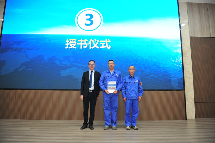 本期特訓營的產(chǎn)出已匯編成冊,百仕瑞高級講師顧晨毅老師、新?lián)P子造船副總經(jīng)理倪榮對新?lián)P子機電車間電工四班班長陳亮進行了授書儀式,隨后陳亮介紹了手冊內(nèi)容及意義。
