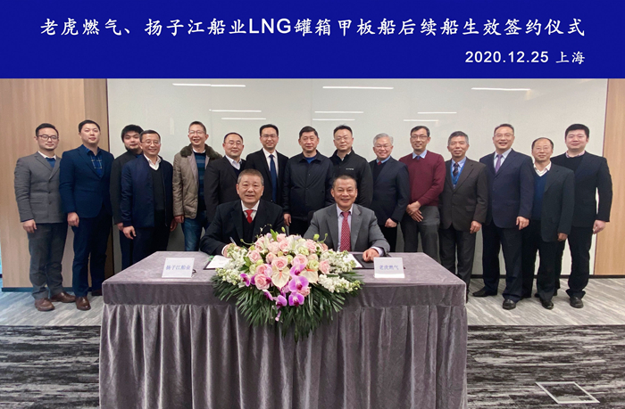 今年6月我集團與老虎燃氣簽署了2+8艘690FEU LNG罐箱甲板船建造合同,12月25日8艘option船中的第一批2艘生效簽約儀式在上海舉行。