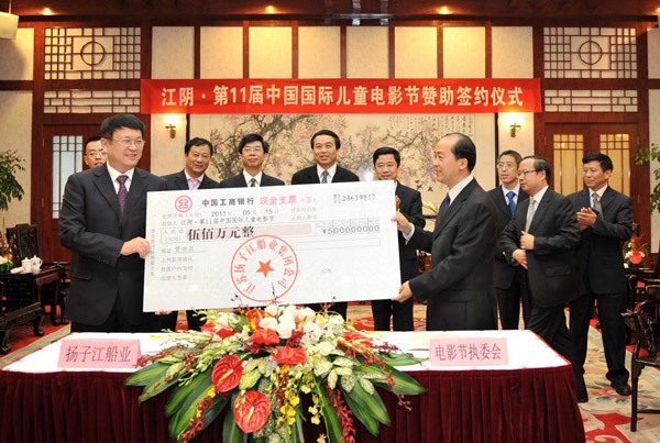 江蘇揚子江船業(yè)集團公司為第11屆中國國際兒童電影節(jié)贊助500萬元